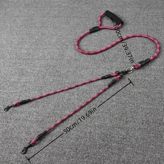 Corde de marche pour chien à double tête pour animaux de compagnie avec motif ondulé, une corde de traction à deux traînées, anti-enroulement et détachable