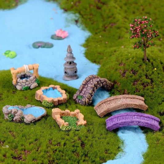 Accessoires de jardin féerique, puits d'eau de source miniatures, pont de bateau, ornement de Statue, Figurines de paysage, décor artisanal de jardin de maison
